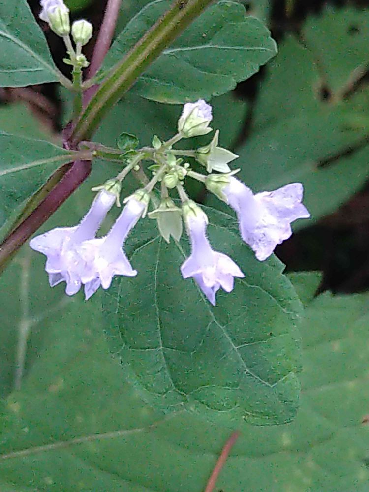湿った沢筋に可愛い小さな透けるような花が咲いていました。カメバヒキオコシか?と思いましたが、似た葉には切れ込みが無い!!!柄には翼がありました。イヌヤマハッカかな? 2023.9.20 阿智村ふるさと自然園、南沢山登山口