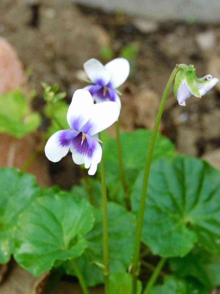 花壇の2か所で咲いているパンダスミレ