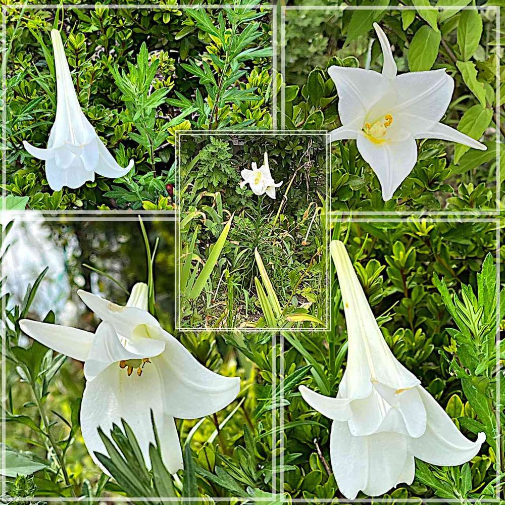 カタバミさんのお出かけ先,テッポウユリ(鉄砲百合),/純白•甘美とも未だ衰えぬ、ここに長い筒状白い花咲かせて/の投稿画像