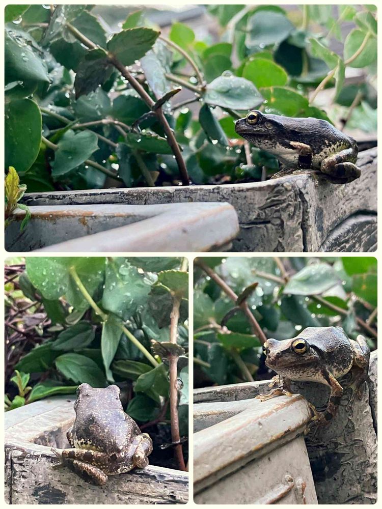 庭にはアマガエル、土ガエル、さっきまでおたまじゃくしだった⁉️😳ってミニサイズも色々ぴょこぴょこしておるぞ➿🐸