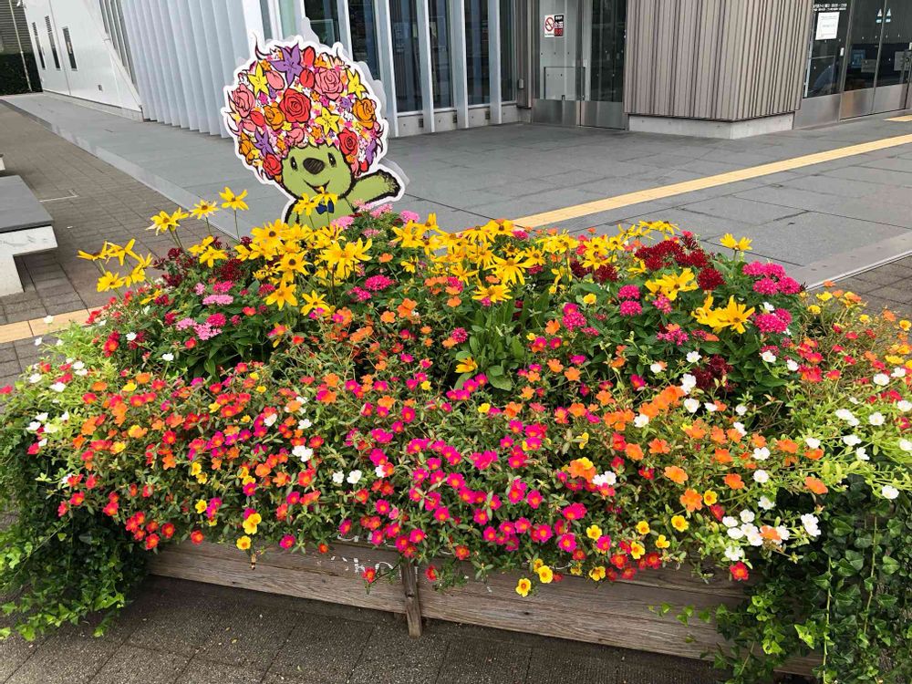 ガーデンベアとポーチュラカやペンタス、黄色いお花が綺麗な植え込みがありました(◍︎˃̶ᗜ˂̶◍︎)✩︎