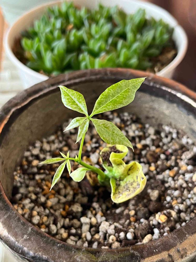 葉の形がちゃんとパキラ🌿班入りらしき模様も確認できました✨