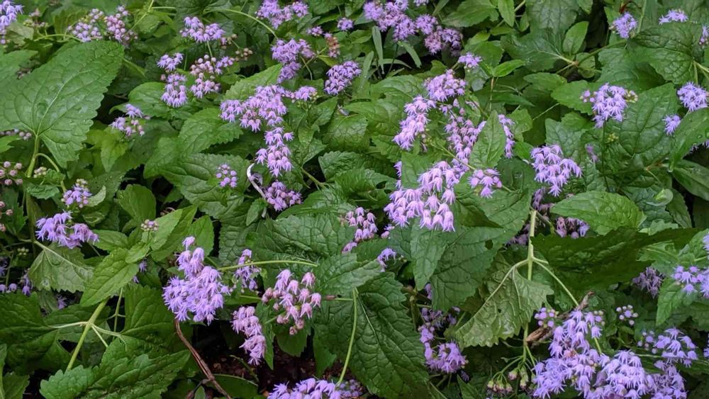 グーグルレンズではユーパトリウム’コエレスティナム’(別名青色フジバカマ)などと。