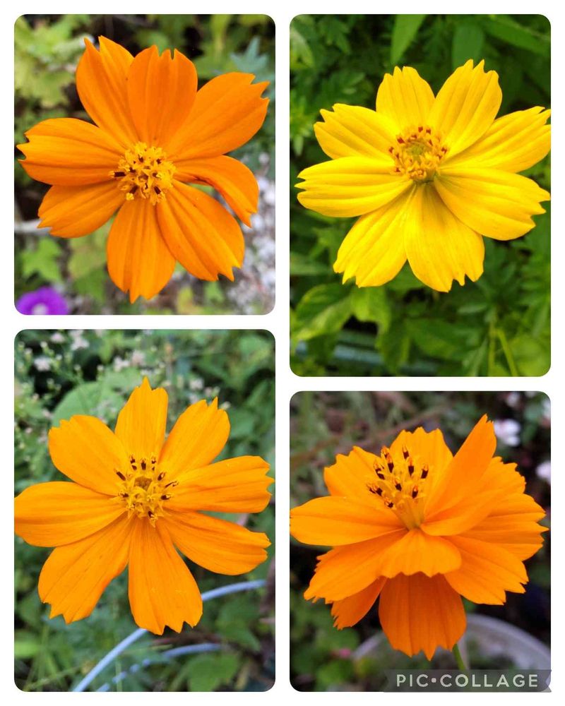 我が家の庭と畑で咲き乱れている、オレンジ色と黄色のキバナコスモス🧡💛