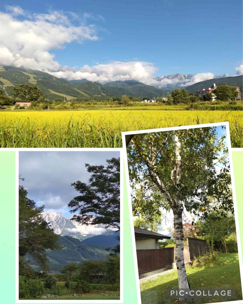 稲刈りを待つ田んぼと白馬の山並み⛰️