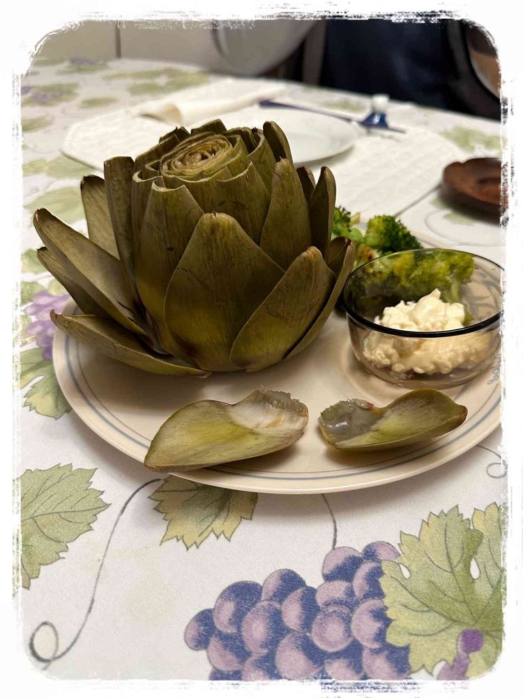 アーティチョーク、私もこの形のまま食べたのは初めて。