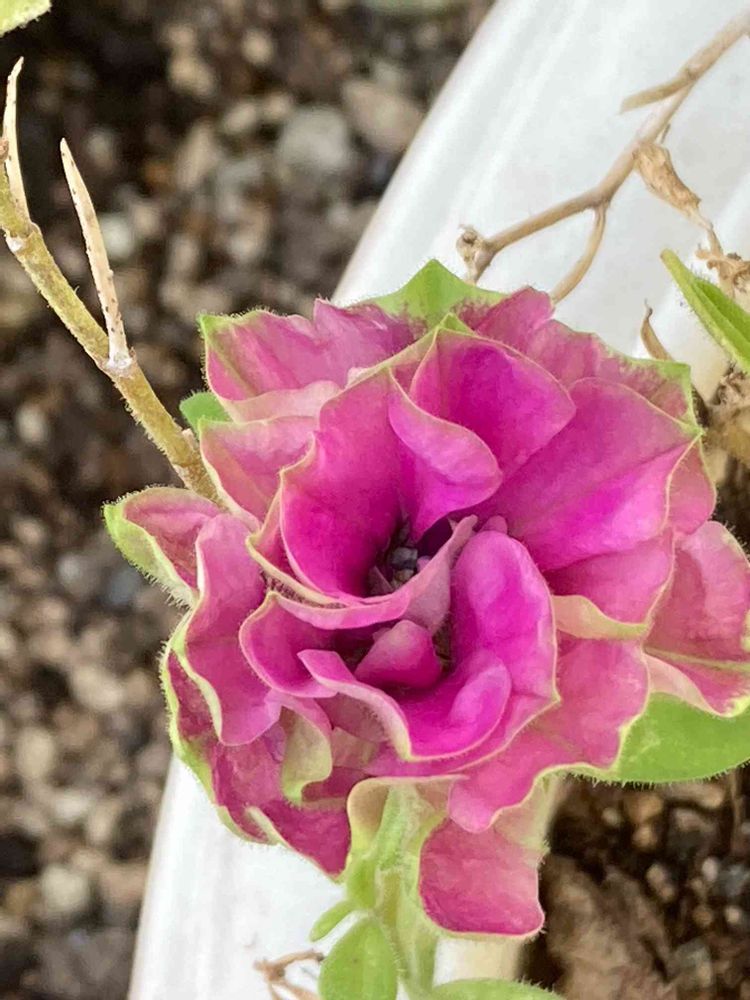 昨年の寄せ植えのペチュニアが、一部復活してきました。
