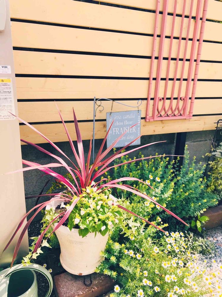 ピンクコルジリネ、庭植えにしてたのを鉢植えしました!やっぱりこっちの方が映える〜🤩