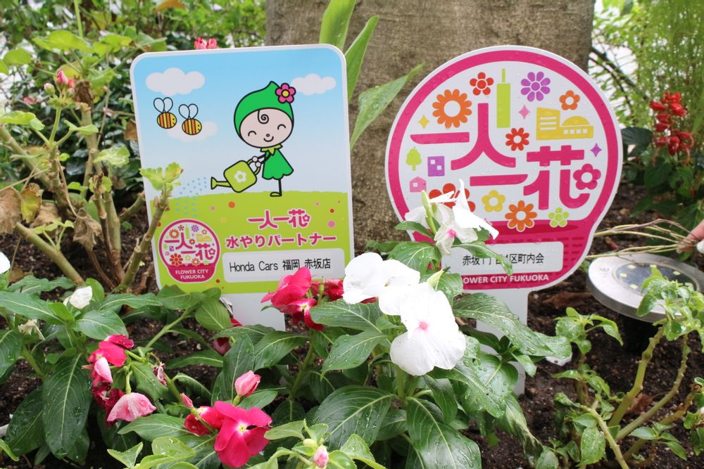 福岡市では,花と緑で未来のまちづくりを進める,「一人一花運動」に取り組んでいます。 「一人一花」,「一企業一花壇」を合言葉に,みんなで花を育てて,花で暮らしを彩り潤すことで,心の豊かさや人のつながりも生み出し,まちの魅力や価値も高めていこうという取組みです。