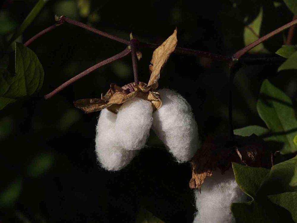 シロバナワタさん(と思います)の果実がはじけ綿花になってます