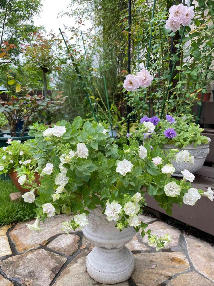 何度も切り戻して咲いてくれましたが、ペチュニアは雨にあたると蒸れるので、玄関先に置いていると、ハダニが付いて葉っぱは白くなり、夏の間はハダニのためにカットしてるような感じでした😓
