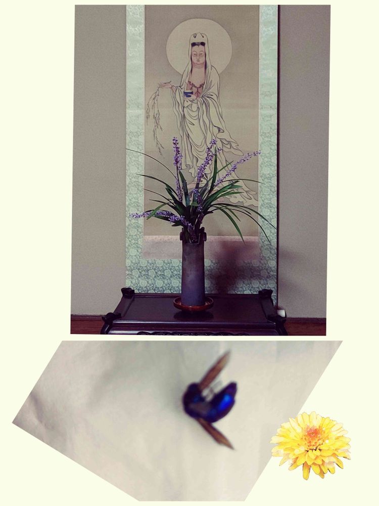 サッシの溝を掃除してたら 瑠璃色の小さな虫の死骸 余り綺麗なので