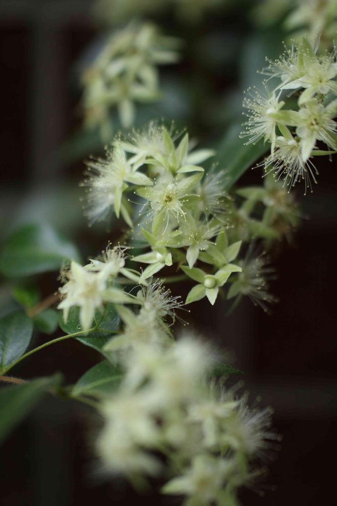 さん、おはようございます。お返事遅くなりすみません。ギンバイカなどの名前で、生け垣に使われたりするお花です。葉をハーブとして色々に使ったりするようですよ(*´ω`*)冬でも照葉の葉っぱがある常緑の低木です(*・∀・*)