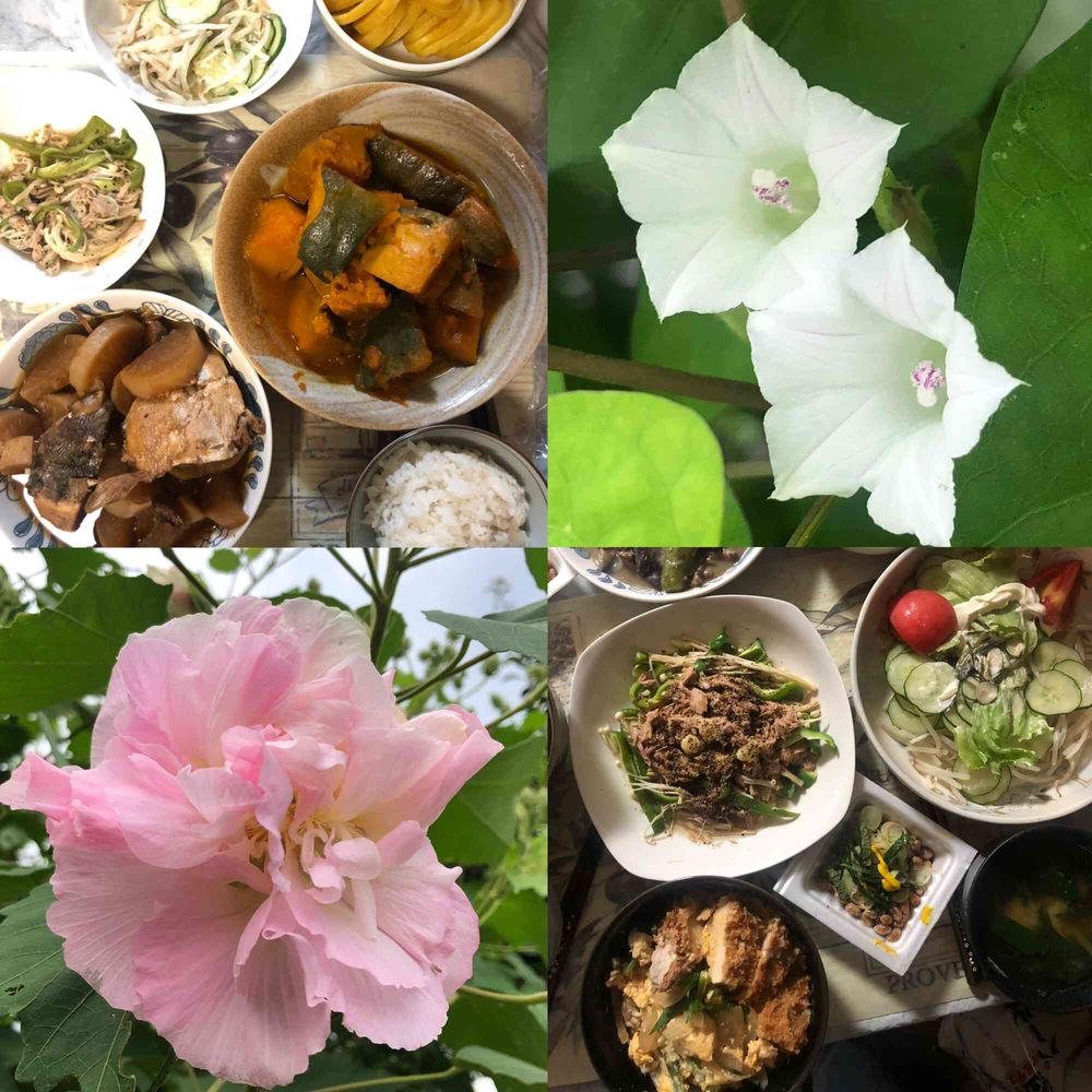 花はマメ朝顔に酔芙蓉です🌸🥗