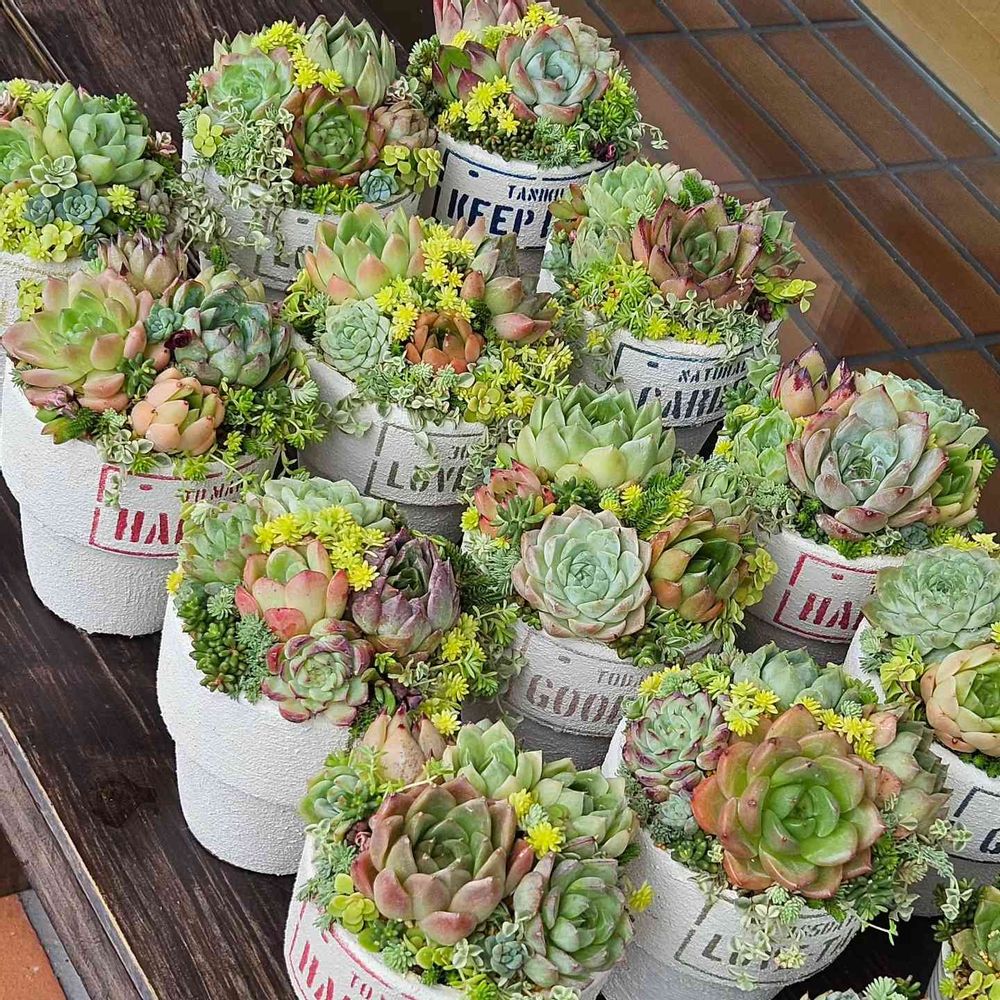 今年の夏は過酷すぎて😅💦まだまだうちの多肉ちゃんは使えませんでしたがセダムは10種類くらい元気に夏越ししてくれたので、たくさん使ってもらいましたよー