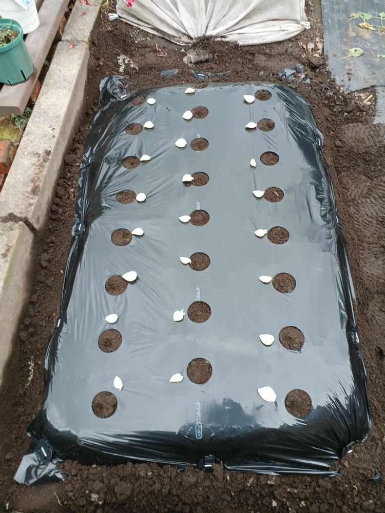二週間野菜室で根だししたニンニクを植え付けます。今年こそは丸々とぷっくりとしたニンニク🧄が出来たら良いな🎵