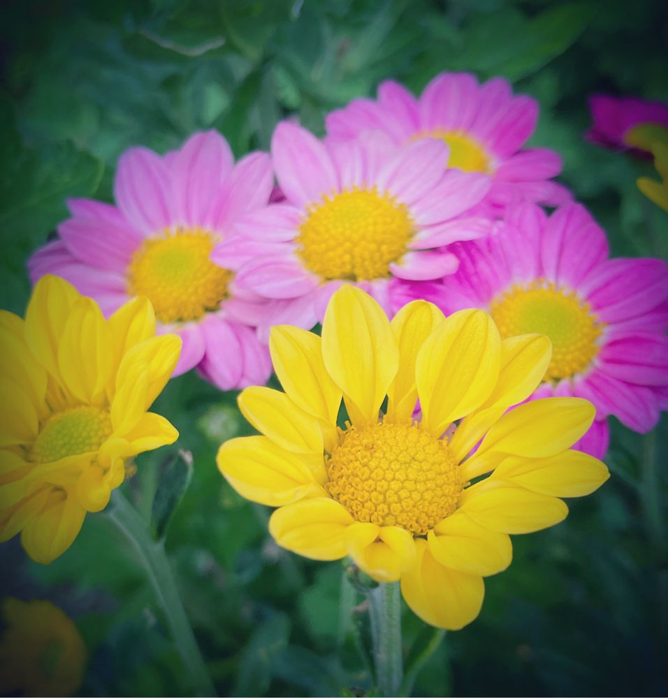 こんにちは。とても綺麗で鮮やかな黄色とピンクのお花。お彼岸にちょうど良いかもです。