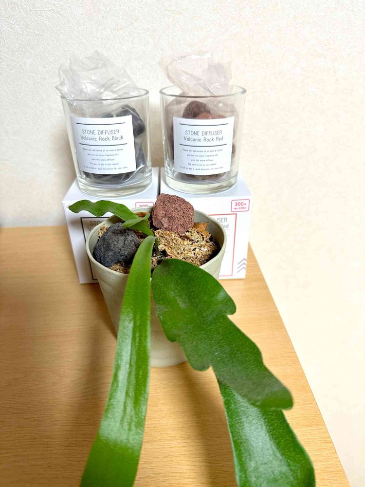 ビカクシダの鉢に入れて仮置きして見たけど、本物の溶岩石!やっぱメッチャええ!