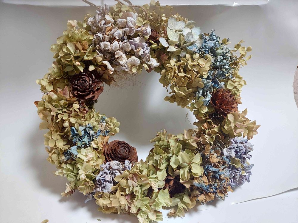 ドライフラワーのリースも出品してみようと、まず一個作ってみました🎵売れるか分からないけど、色々あったほうが華やかかなー?
