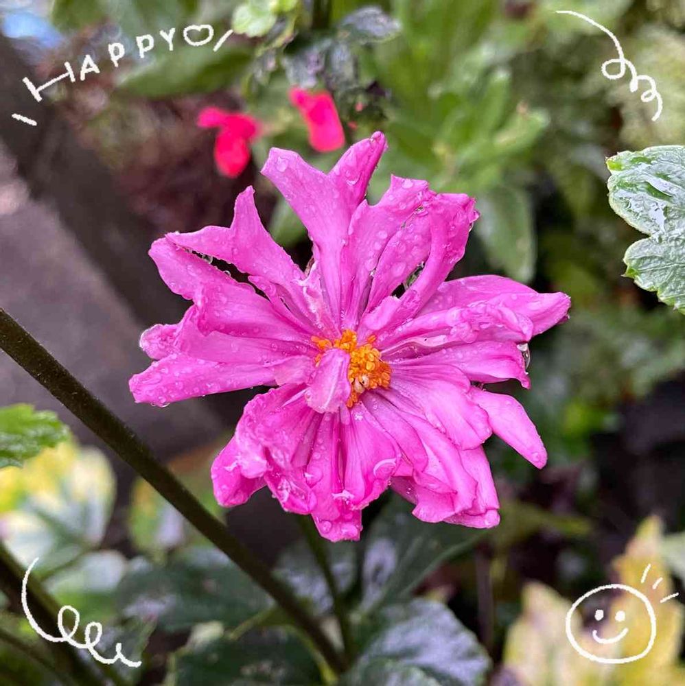 綺麗に八重咲きのピンク色の秋明菊が咲いて良かったね。ハッピー(´▽`)ノ💕︎