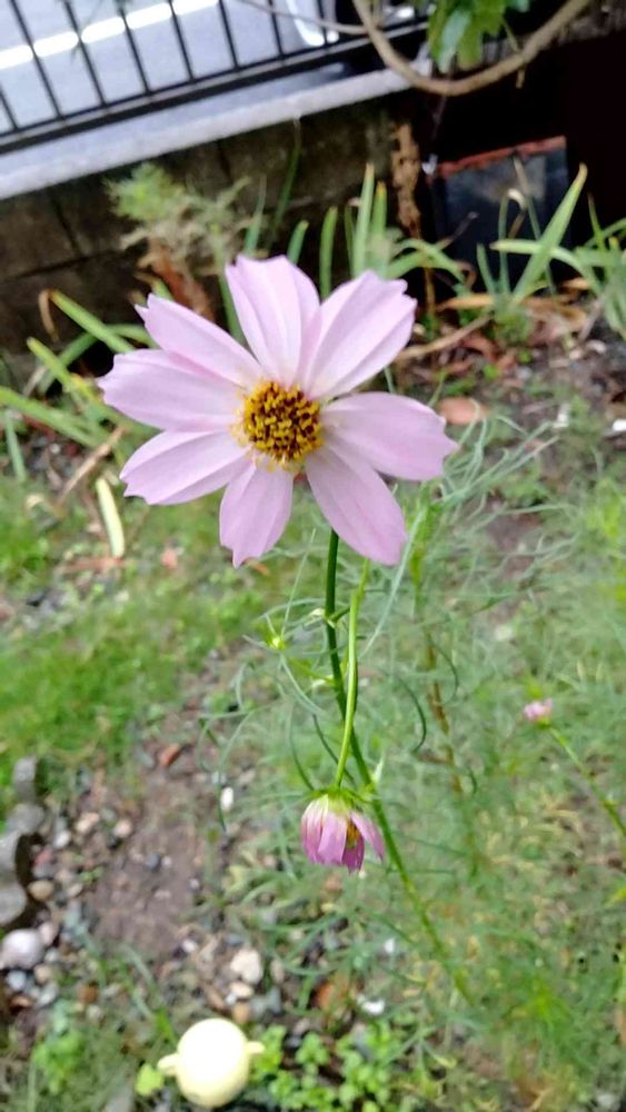 去年コスモス畑からもらってきた種を植えて、ようやく咲きました🏵️