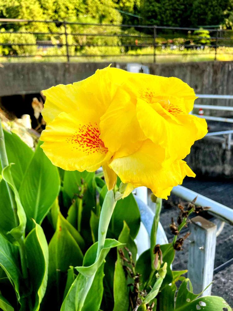 m&oさんの朝の散歩道,黄色いカンナの花,地下道の入り口花壇にの投稿画像