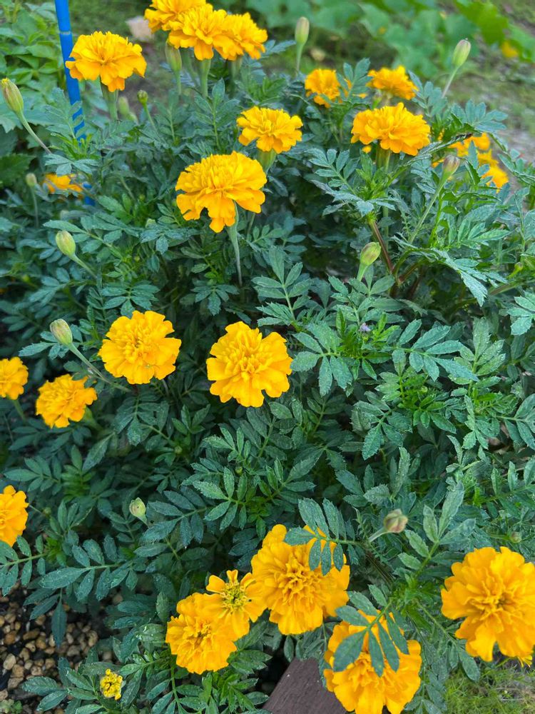こぼれ種からのマリーゴールドが今年も元気に咲いています☺️