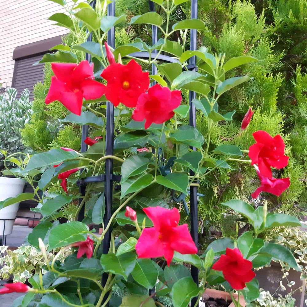 クライミングサンパラソル、朝夕が涼しくなって、赤が綺麗に成りました🌿🌸