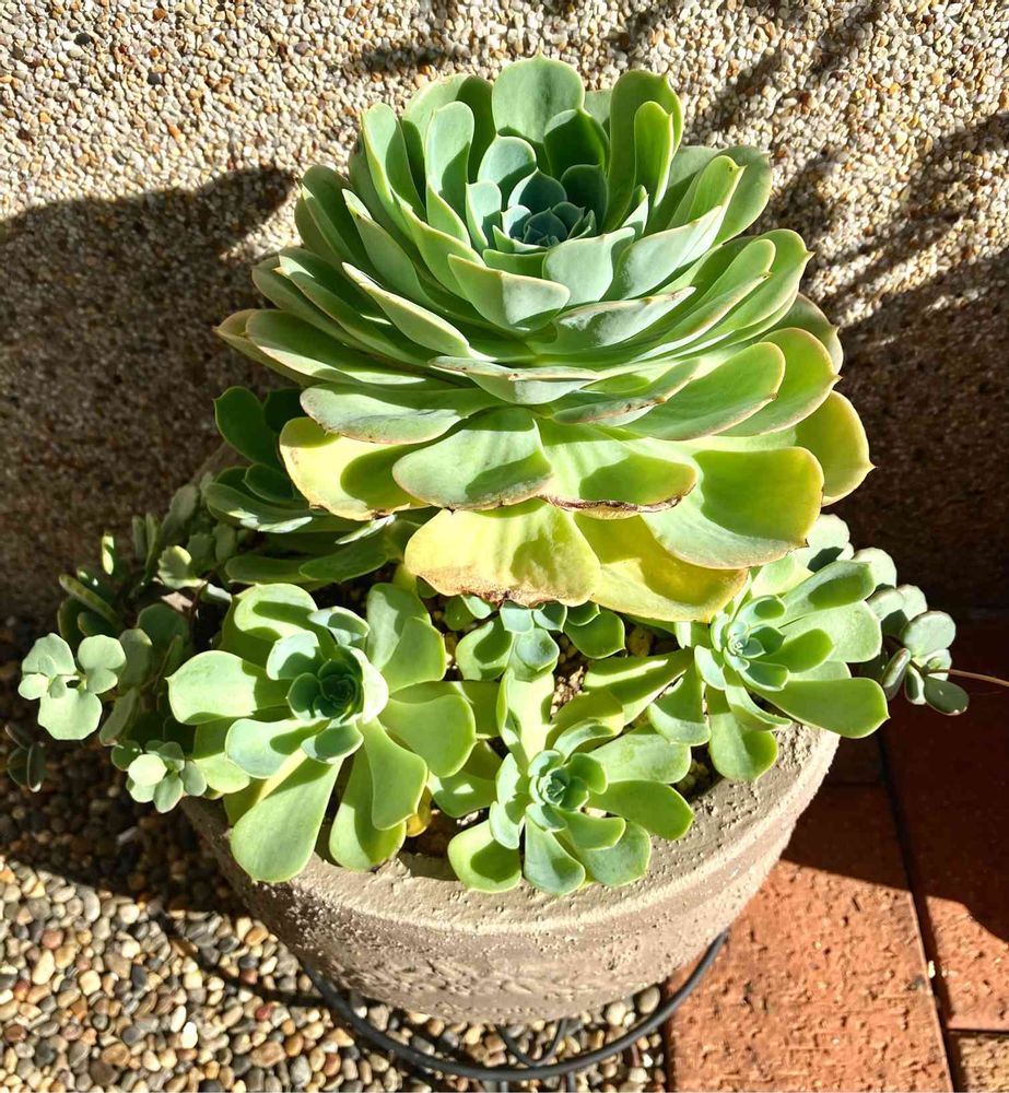 遮光ネットを外したら、お母さんが立派になって、子株さん達もわらわら育ってて、ちょっと窮屈そうにしています。