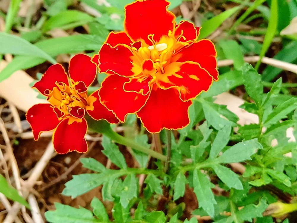 昨年いろいろなマリ-ゴ-ルドの種をもらって畑に今年まいていたものがいますたくさん咲いています。