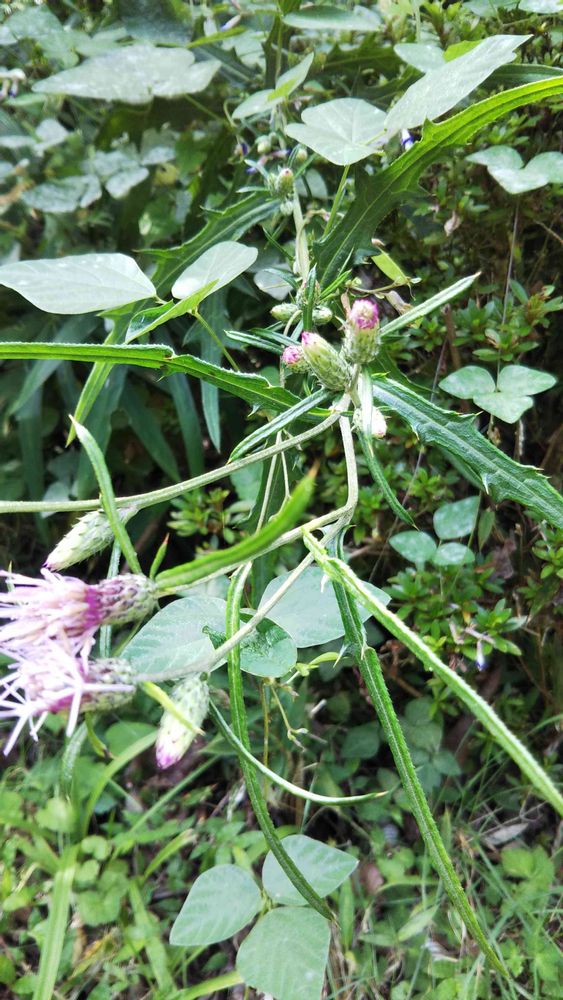 横顔しか見えませんが、アザミに似たこの花は何でしょう。
