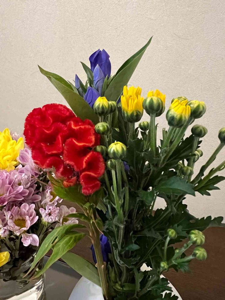 紫🟣のりんどう 真っ赤な鶏頭の花とっても素敵ですネ💓