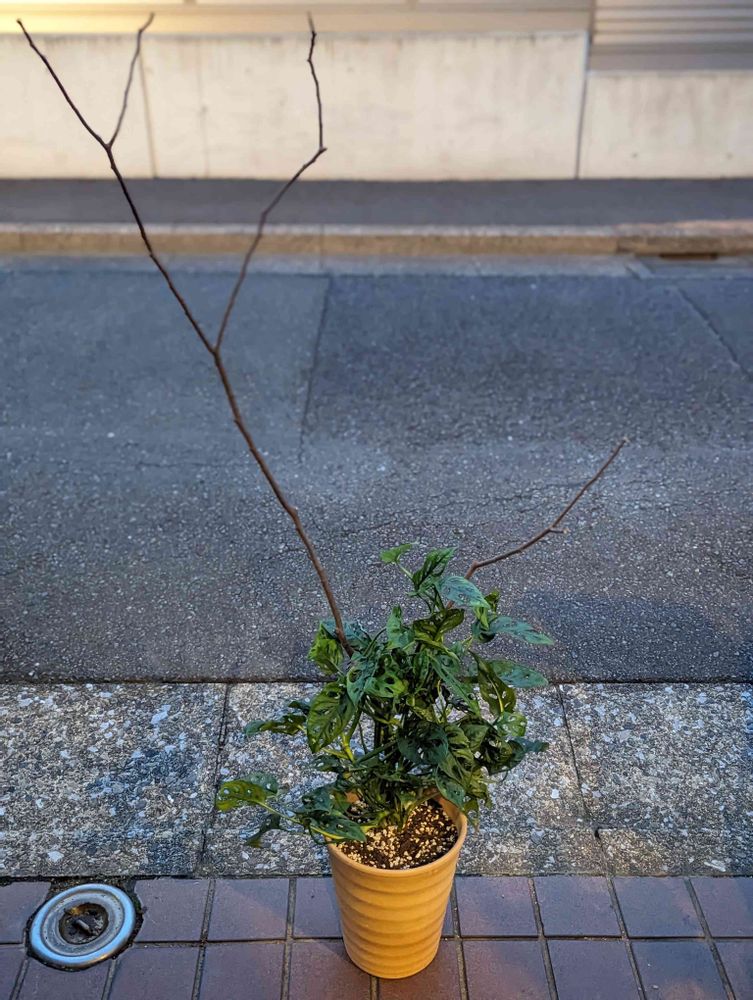 枝拾ってきたのさ、マドカズラがニョロニョロしてきたから上に伸ばしてあげたくて。