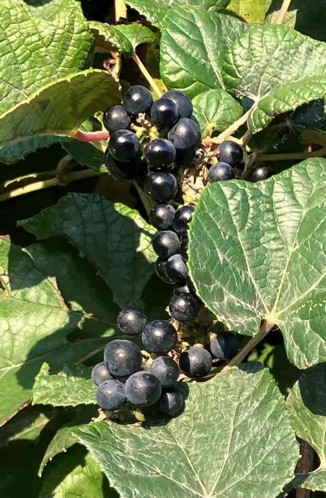 夕方散歩にて🚶生垣の茂みで夕日に照らされたツヤツヤの実をみつけました✨黒くて小さいぶどう?調べるとエビヅルのようです🤔