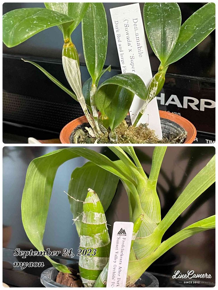 Dendrobium amabile(=bronckartii)(原種)デンドロビウム アマビレ(=ブロンカルティ)2株が売残っていたので良さそうな株を選んでお連れしました(野口さんお1人)実生株だからどんな色のお花が咲くか分からないよォꕀ⋆咲いてからのお楽しみらしい…