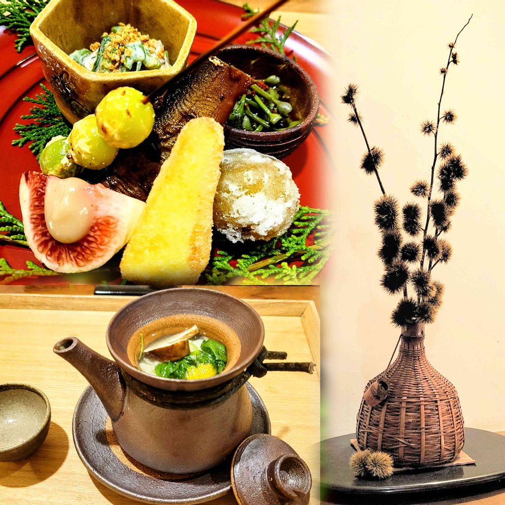 焼き栗🌰、子持ち秋刀魚、セリ、ミズの実、