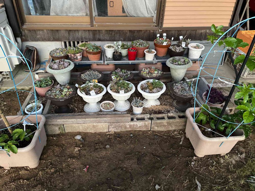 玄関周りに置いた多肉植物の鉢達をタイヤ花壇とは別に