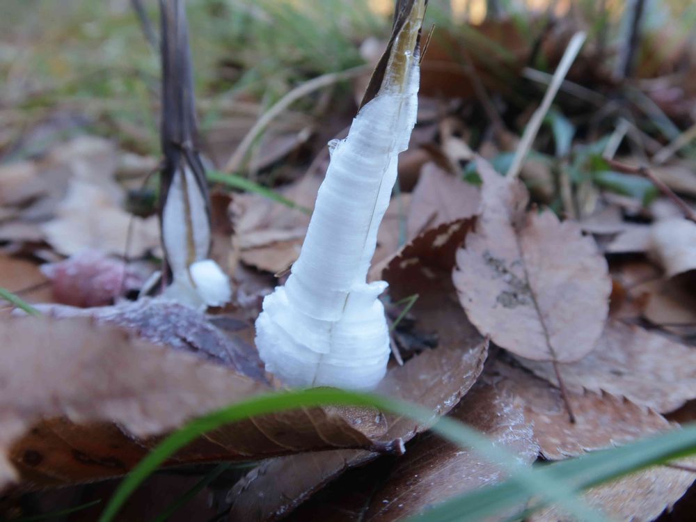 先に紹介させて頂いたシモバシラ。冬の氷点下の朝、このように氷の結晶シモバシラが出来ます。朝起きて気温が下がっていたら自生地まで行きます。気温が上がると溶けてしますので急ぎます。😄