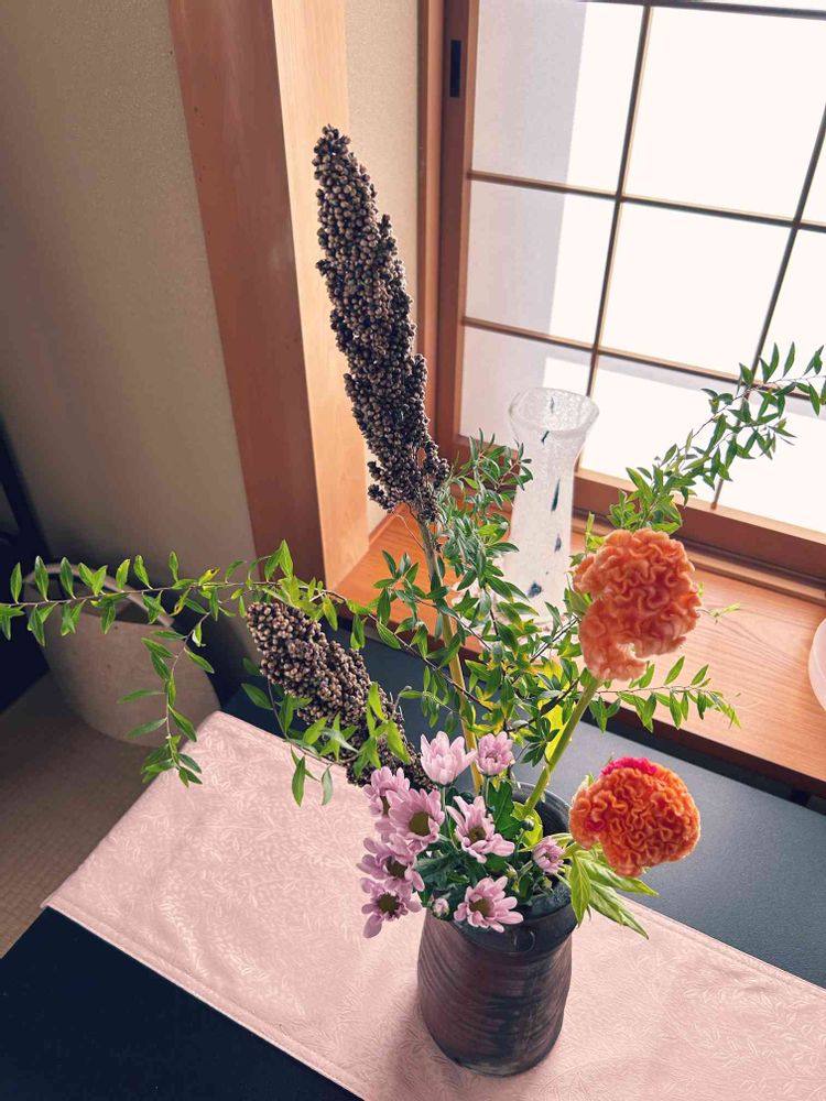 着物着て、、秋を🍂生ける、素敵な日本女性が見えます。👏👏💦