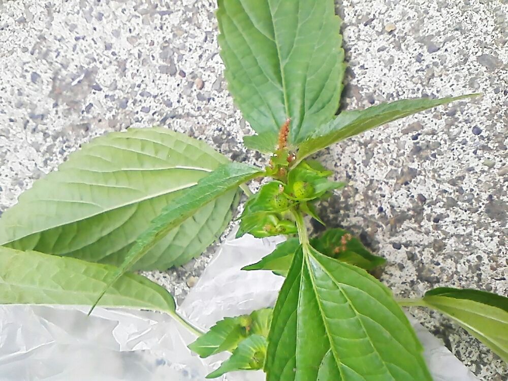 牧野新植物図鑑によると 葉腋に柄のついた花序を出す。雄花はがく4裂し雌花ではがくが3裂していて茎は直立し高さ20 ~40