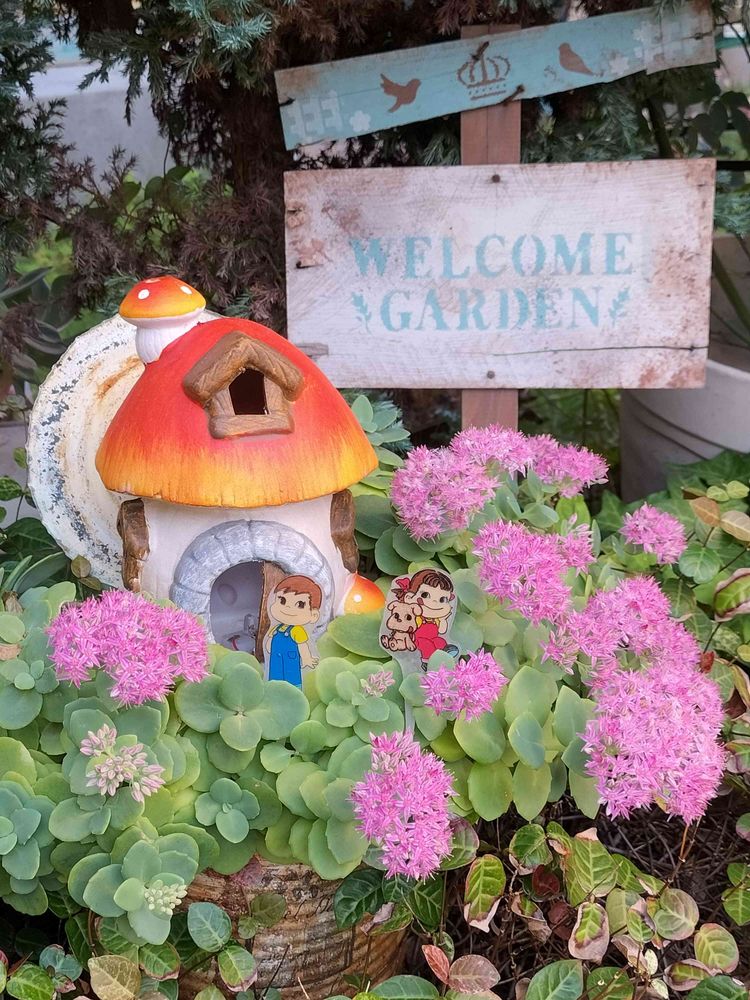 🍄ハウスの前のペコちゃんポコちゃんがcuteだわ❤️❤️