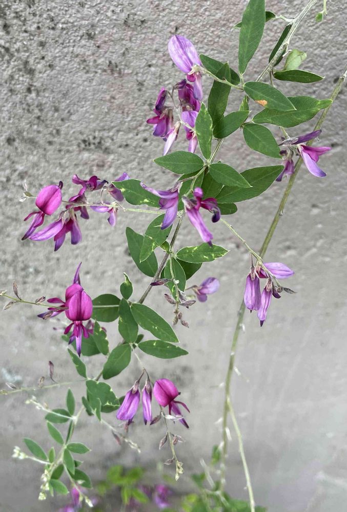 秋の七草を集めたくて植えたハギが咲きました。場所がないので、矮性種のヤクシマハギにしました(屋久島産というわけではなく、矮性種のものに「屋久島」と付けることがよくあるそうです)。ただ、枝が1mくらい伸びて枝垂れていて、想像していたより大きい…🙄