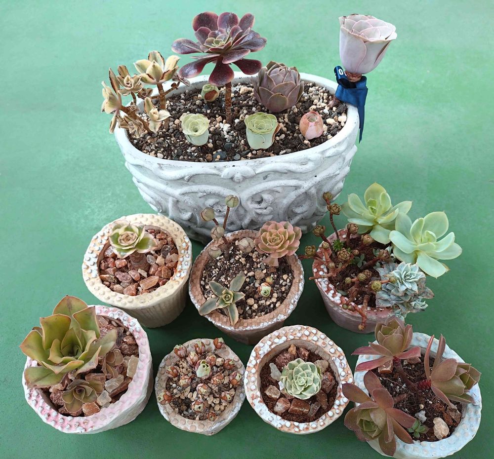 大きな寄植えに入ってるアエオ(グリノービア)は未発根が多いので無事に根付いてくれるといいです😊