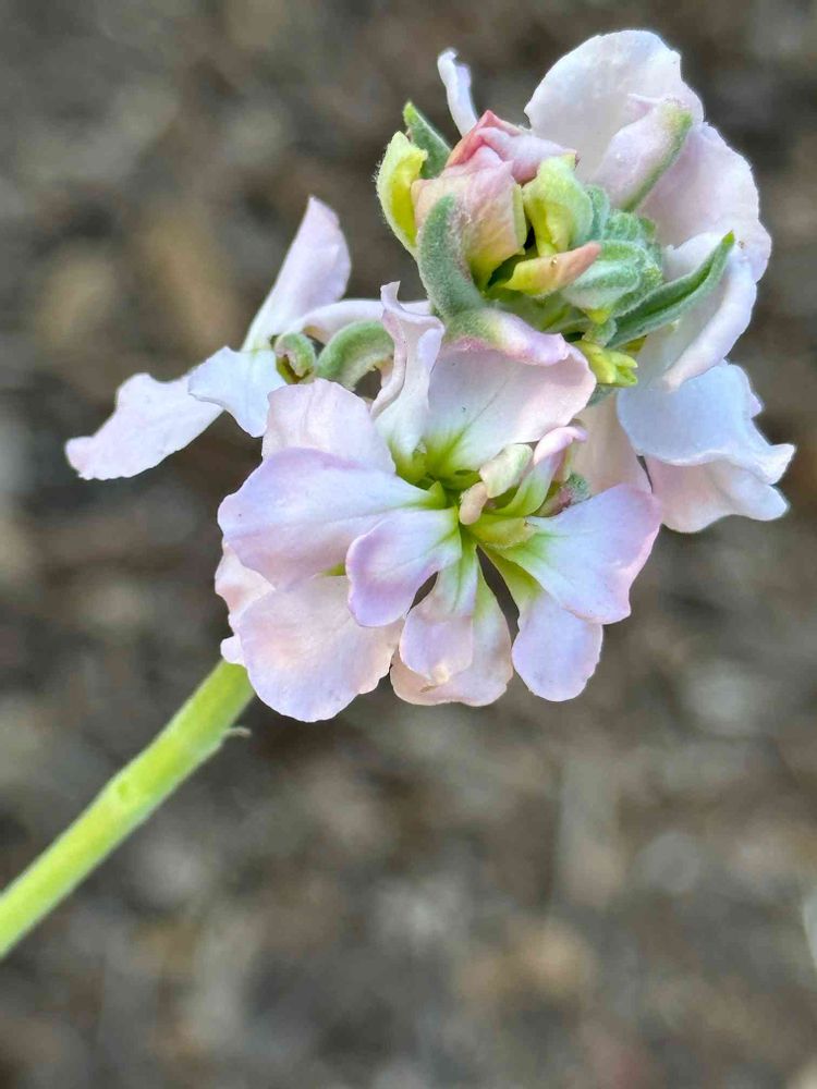 Matthiola incana/Matthiola. Brassicaseae. Brassicales. Magnoliopsida. Tracheophyta Commonly called/Hoary stock The common name/Night-scented stock Native to/Southern Europe Naturalized/Western part of the Mediterranean region Symbolism/Happiness for long life and contentment in life. Spiritual putity *Botanical name ‘Matthiola’ believed to be named after Pierandrea Matthiola, an Italian botanist. Photographed 9/24 9:28am 2023 Posted 9/25(Monday) 11:07am 2023