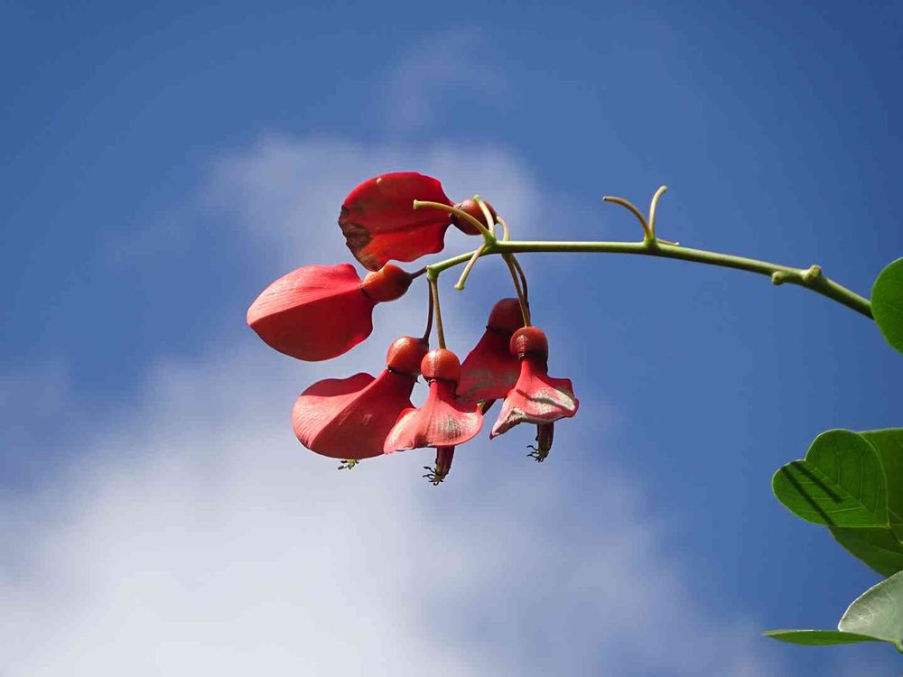 青空と白い雲に真っ赤なマルバデイゴ❓️