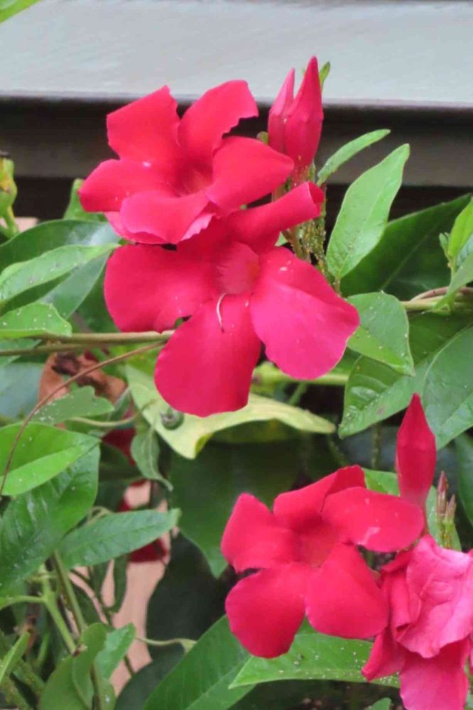 真っ赤なマンデビラが鮮やかに咲いていました。