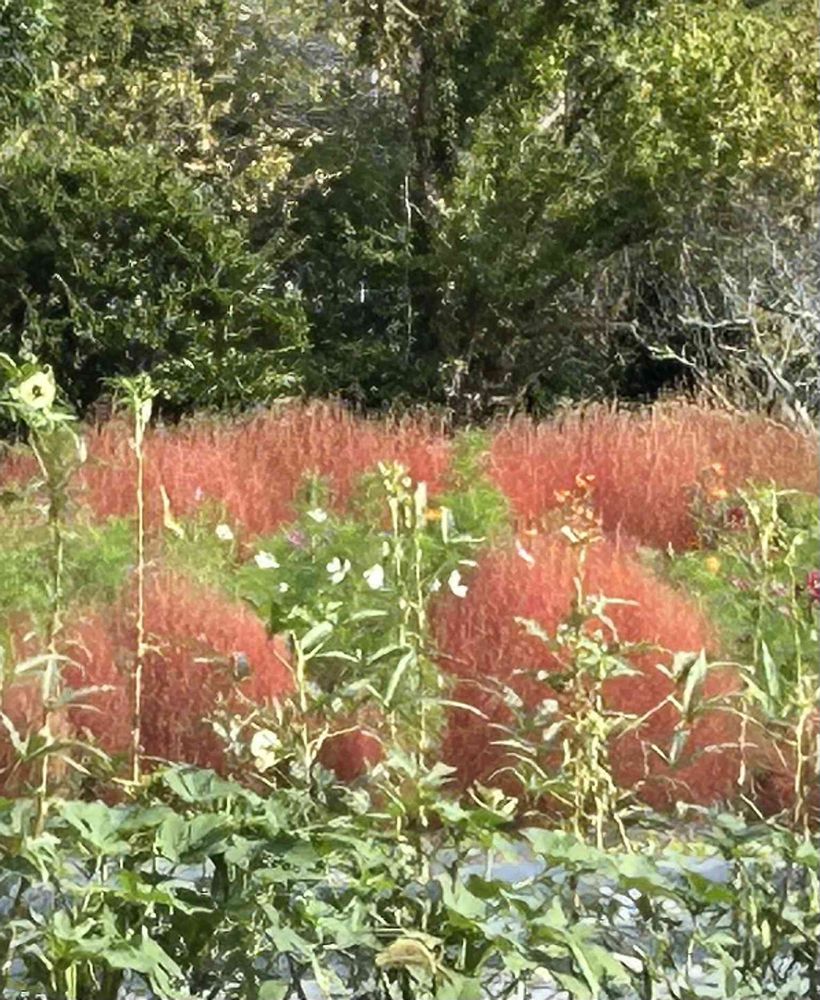 お隣さんの畑のコキアです。うちからお嫁に行った孫ちゃんです。なんでも上手に育てはるお嫁ちゃんです。