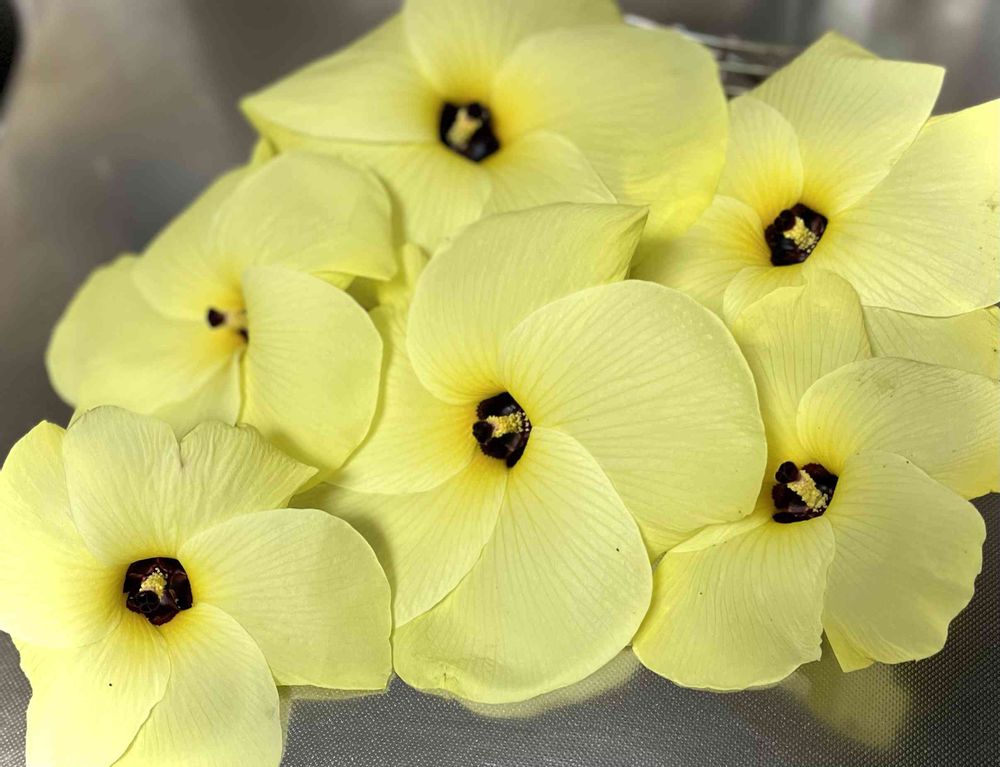 花オクラ😳? 普通のオクラの花とは見た目が違いますねぇ。花を生で食べるんですね😳
