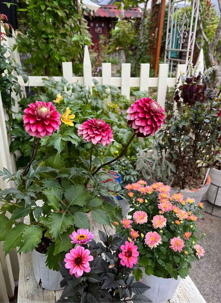 このピンク系の向こうにはまだ咲いてないですがオレンジ色と黄色のダリアがあってこれから咲くのでそれも楽しみです🧡💛