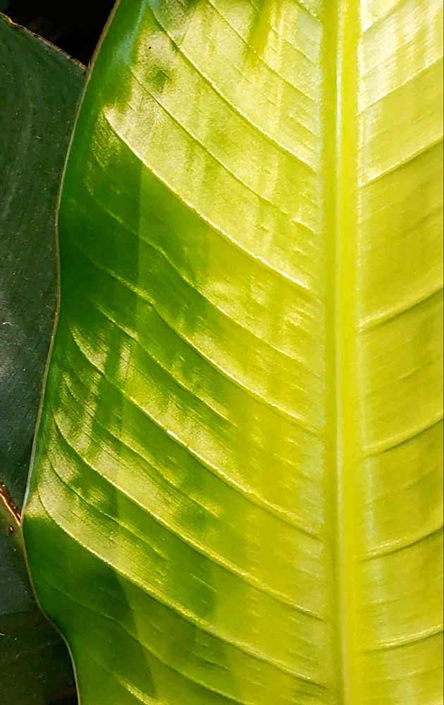 2025.8月に某サイトで購入した【アロカシア チャイ】の 突然変異?なんだろう 購入時、元々有った葉を(1枚目の葉)として、 下から新たな葉が出てきてる状態で到着しました(2枚目の葉) こちらに来て初めて出てきた葉に異変が。。 育て始めて出てきた初めての3枚目、4枚目 (途中から、斑1、斑2、、と続きます) どこまでこの謎の斑入葉が続くのか、 いや止まるのか……記録していきます
